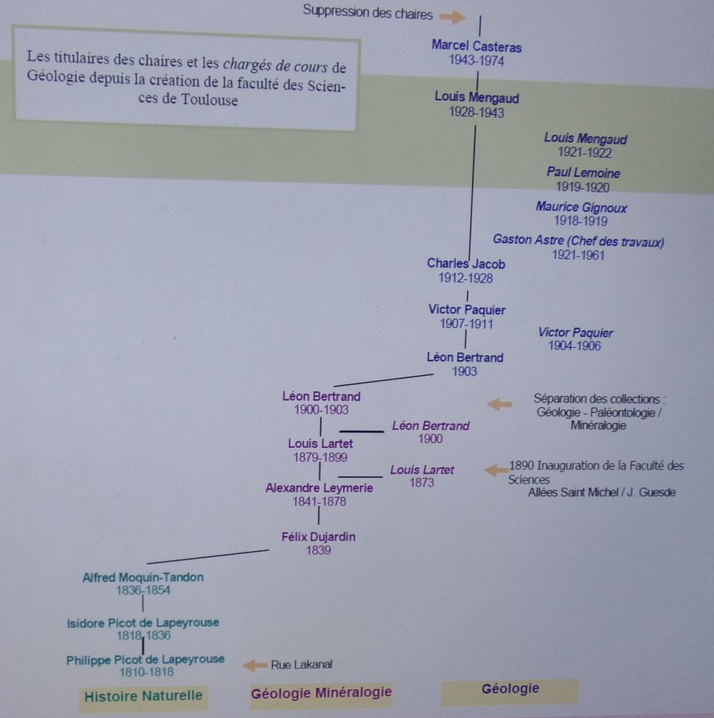 Les titulaires de chaires et chargés de cours de géologie de la faculté des sciences de Toulouse