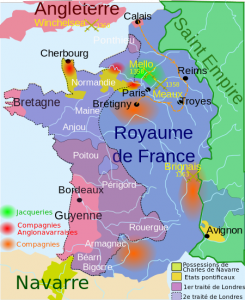 La Guerre de Cent Ans est due à plusieurs causes dont une qui est le contrôle du duché de Guyenne. Le duché de Guyenne est une ancienne province se situant dans le sud-ouest de la France et qui a pour capitale Bordeaux. Son nom est apparu au XIIIe siècle et a remplacé l’appellation d’Aquitaine. Elle englobe les territoires d’Aquitaine mais aussi du Quercy, du Périgord et de l’Agenais. La Guyenne a déjà traversé une période de guerre de 1294 à 1303, opposant le royaume de France et celui d’Angleterre. Les historiens appellent ce conflit “La guerre de Guyenne”, qui aura comme issue “Le traité de Paris” après une victoire française. Dans ce conflit, la possession de la Guyenne est l’une des causes de la guerre.